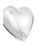 Women's BOSS 1580830 Honey Heart stud earrings in stainless steel with an organically shaped heart motif and engraved BOSS branding.