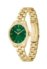 BOSS Ladies Sage Green Dial Gold Plated Bracelet Watch by BOSS offers timeless glamour for everyday styling.