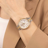 - Stainless steel bracelet with gold-plated accents for a refined, durable look.