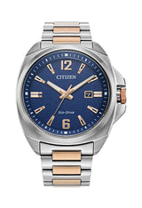 Citizen Gents Rose Gold Plated Eco-Drive Blue Dial Bracelet Watch