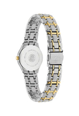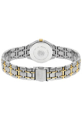 - Polished gold-tone case with brushed steel links for a timeless, versatile look.