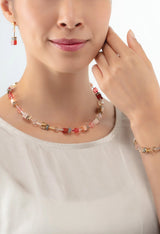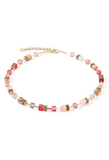 Coeur De Lion GeoCube Cornelian, Pink Aventurine & Jasper Necklace Gold Plated