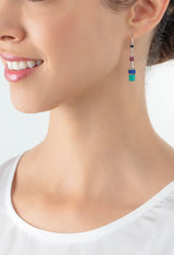 These GeoCube earrings pair turquoise and purple glass cubes with sleek stainless steel elements, creating a vibrant focal point that elevates any outfit.