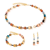 Coeur De Lion Gold Plated GeoCUBE® Brown-Petrol Necklace 2838/10-1131