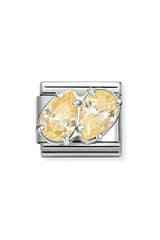 Elevate your charm collection with this Nomination Composable Silver Double Teardrop Charm, featuring radiant yellow cubic zirconia accents. Crafted from polished silver, its elegant double teardrop design offers a refined look that effortlessly complements any style. Perfect for customization, this charm adds a subtle yet sophisticated sparkle to your bracelet or necklace.