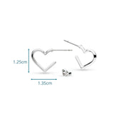 Women's Kit Heath Love Silver Heart Fine Outline Semi-Hoop Stud Earrings in rhodium-plated sterling silver.