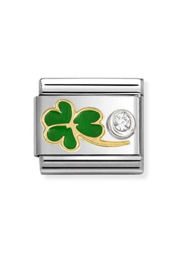 Nomination Composable Classic Link Green Enamel Shamrock With CZ Stainless Steel 925 Silver 750 Gold