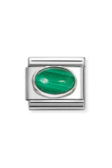 Nomination Composable Classic Link Oval Malachite Stone in Steel and 925 Silver
