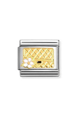 Nomination Composable Classic Symbols Bag With Flowers in Steel, Enamel and 18k Gold