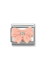 Elevate your charm collection with the Nomination Composable Pink Resin Bow Charm. Crafted in sterling silver, this elegant piece features a delicate pink resin bow, adding a refined touch of color and grace. Designed for seamless composition, it integrates effortlessly into your existing Nomination bracelet, allowing you to personalize your look with timeless sophistication.