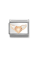 The Nomination Composable Rose Gold 'Flying Heart' Charm elegantly captures the essence of love and freedom. Crafted in lustrous rose gold, its graceful heart design with wings adds a refined and emotive detail to your collection, embodying both sophistication and sentiment.