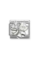 Refine your bracelet with the Nomination Composable Silver & CZ Clover Charm. Crafted from sterling silver, this elegant charm showcases a polished clover leaf accented with sparkling cubic zirconia, symbolising grace and fortune. Its sleek design allows easy pairing with other composable pieces, offering a timeless and sophisticated addition to your jewellery collection.