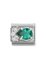 Enhance your jewellery collection with the Nomination Composable Silver Green CZ Teardrop Charm. Crafted from sterling silver, this sophisticated charm features a vibrant green cubic zirconia teardrop that adds a refined pop of colour. Its elegant design allows for effortless customization, making it a graceful addition to any bracelet.