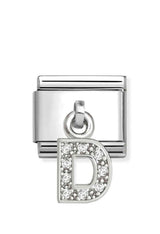 This Nomination Composable Initial D CZ Drop Charm is elegantly crafted from sterling silver and embellished with a dazzling cubic zirconia stone. Its sleek, refined design allows for personalized expression, effortlessly enhancing any bracelet or necklace with a sophisticated touch. Perfect for adding timeless elegance to your jewellery collection.