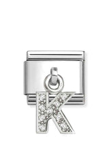 Elevate your charm bracelet with the Nomination Composable Silver Initial 'K' CZ Drop Charm. Crafted in sleek silver, this elegant piece features a sparkling cubic zirconia accent that adds a refined touch. Perfect for personalizing your jewelry collection with a subtle statement of individuality and sophistication.