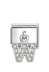 Give your charm bracelet a boost with the Nomination Composable Silver Initial 'W' CZ Drop Charm. Crafted from fine silver, this charm features a sparkling cubic zirconia accent that adds subtle brilliance. Its elegant design allows effortless pairing with other charms, perfect for creating a personalised and sophisticated accessory that reflects your individual style.