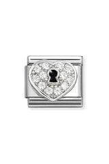 Nomination Composable Symbols Pave` Heart Key Hole' in Steel, Cubic Zirconia and Silver 925