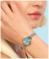 - Vibrant turquoise dial adds a pop of color to any outfit.