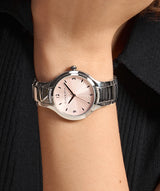 - Blush pink dial paired with a stainless steel bracelet for a feminine, sophisticated look.