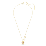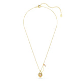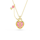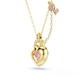 Swarovski Idyllia pendant necklace in Pink. Gold-tone plated pendant necklace featuring a locket-inspired heart motif with a central pink dancing Cubic Zirconia, finished with an adjustable chain and lobster clasp closure.
