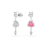 Swarovski Idyllia drop earrings 5749602 in rhodium plating, reversible heart-and-arrow motif with clear Swarovski Crystal on one side and vivid pink on the reverse, mixed cuts.