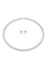 - Set includes a stunning rhodium-plated tennis necklace and matching earrings