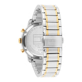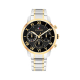 The Tommy Hilfiger Men's Two-Tone Oxford Watch exemplifies refined elegance with its bold black dial and striking two-tone bracelet. Expertly crafted, this watch combines classic design elements with modern sophistication, making it an ideal accessory for those who appreciate understated luxury and timeless style.