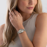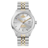This stunning timepiece features a silver dial and is crafted from high-quality stainless steel with gold-plated accents, giving it a luxurious two-tone finish.