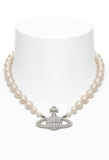 Vivienne Westwood Platinum Plated One Row Pearl Bas Relief Choker Necklace 63010106-02P104-CN
